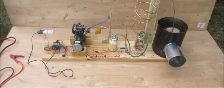 در این ویدئو همانطور که خواهید دید با استفاده از گاز ناشی از سوختن چوب موتور بنزینی را روشن کرده و از روشن شدن موتور دینامی را به چرخش درآورده و تولید الکتریسیته میکند .